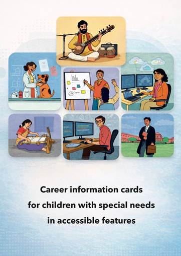 Earlier, NCERT developed a Career Guide Book with 500 Career Cards for students in collaboration with UNICEF. Now efforts have been made to make these Career cards accessible for CwSN. In this endeavour NCERT has developed 150 Career Cards specially designed for CwSN in collaboration with UNICEF making career guidance universally accessible and inclusive. Now, these cards are available in Braille format too.