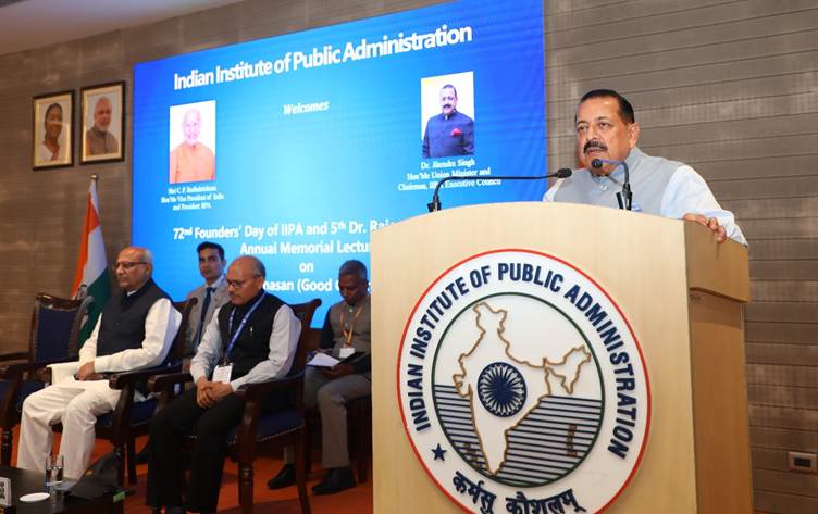 Union Minister Dr Jitendra Singh delivering the 5th Dr. Rajendra Prasad Annual Memorial Lecture on “AI for Sushasan (Good Governance)”, on the occasion of 72nd Founder’s Day of IIPA at New Delhi , on Wednesday.