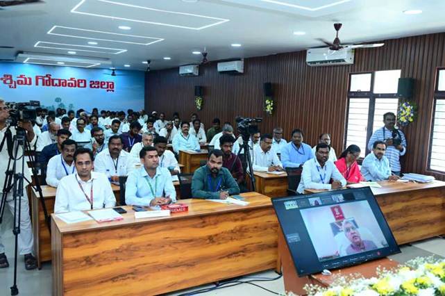 Addressing the Fish farmers, Dr. Abhilaksh Likhi, Secretary, Department of Fisheries, MoFAH&D, GoI, appreciated the active participation of all stakeholders and thanked farmers for their valuable feedback, which he said is critical for both Central and State policy responses. He congratulated the Government of Andhra Pradesh for achieving 64 lakh tonnes of fish production through proactive initiatives. He said that continued support will be provided to the Bhimavaram cluster, with focused action to address gaps across pre‑production, production and post‑production stages. He emphasised promoting fish consumption through tie‑ups with defence and other government institutions, encouraged exposure visits for farmers within India and abroad, and stressed adoption of a whole‑of‑fish approach and fish waste utilisation, including a proposed tripartite collaboration with Iceland. He also called for setting up a CIBA‑led awareness camp in Bhimavaram on new technologies and good aquaculture practices and directed MPEDA to strengthen market and export linkages while sensitising farmers on certification and traceability. All stakeholders of the value chain were urged to support for the development of the cluster going forward.