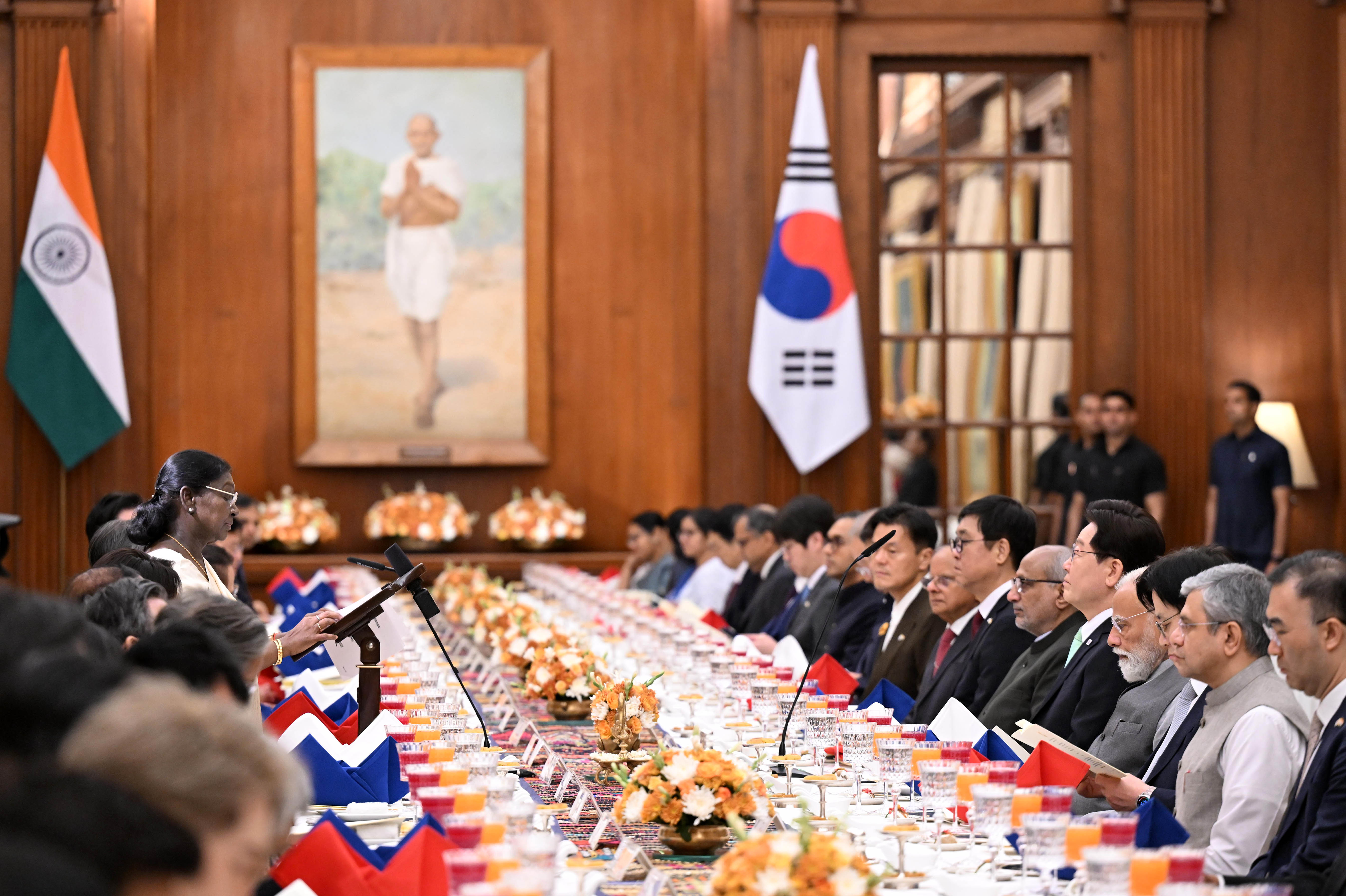 Welcoming President Myung on his first visit to India, the President appreciated him for his significant contributions to strengthening India-Korea bilateral relations, particularly as Chair of the Korea–India Parliamentary Friendship Group. She said that this visit, within the first year of his presidency, reflects the importance he attaches to our relationship.