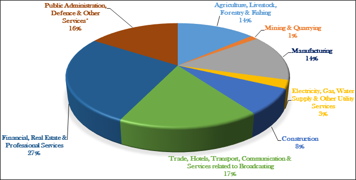 Tertiary Sector: Trade, Hotels, Transport, Communication and Services related to Broadcasting, Financial, Real Estate & Professional Services and Public Administration, Defence & Other Services]