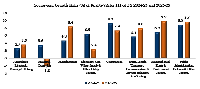 Fig. 5: Sectoral Growth Rates of Half-Yearly (H1, FY 2025-26) Real GVA