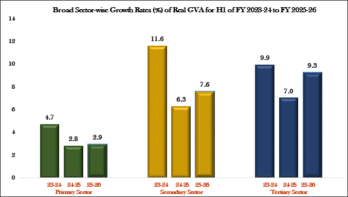 The Secondary and Tertiary Sector has boosted the Real GDP in H1 of FY 2025-26 to attain a growth rate of 8.0%.