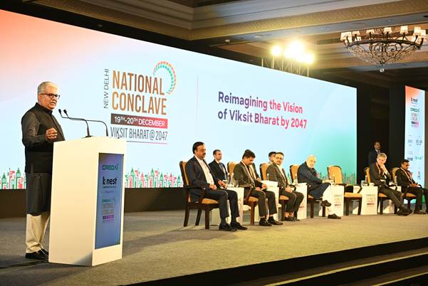 केन्द्रीय पर्यावरण, वन एवं जलवायु परिवर्तन मंत्री श्री भूपेंद्र यादव ने आज नई दिल्ली में आयोजित कन्फेडरेशन ऑफ रियल एस्टेट डेवलपर एसोसिएशंस ऑफ इंडिया (सीआरईडीएआई) के राष्ट्रीय सम्मेलन 2025 को संबोधित किया। उन्होंने भारत के आर्थिक विकास, शहरी भविष्य और जीवन स्तर को आकार देने वाली राष्ट्र निर्माण शक्ति के रूप में रियल एस्टेट क्षेत्र की महत्वपूर्ण भूमिका पर जोर दिया। इस अवसर पर केन्द्रीय गृह एवं सहकारिता मंत्री श्री अमित शाह मुख्य अतिथि के रूप में उपस्थित थे।