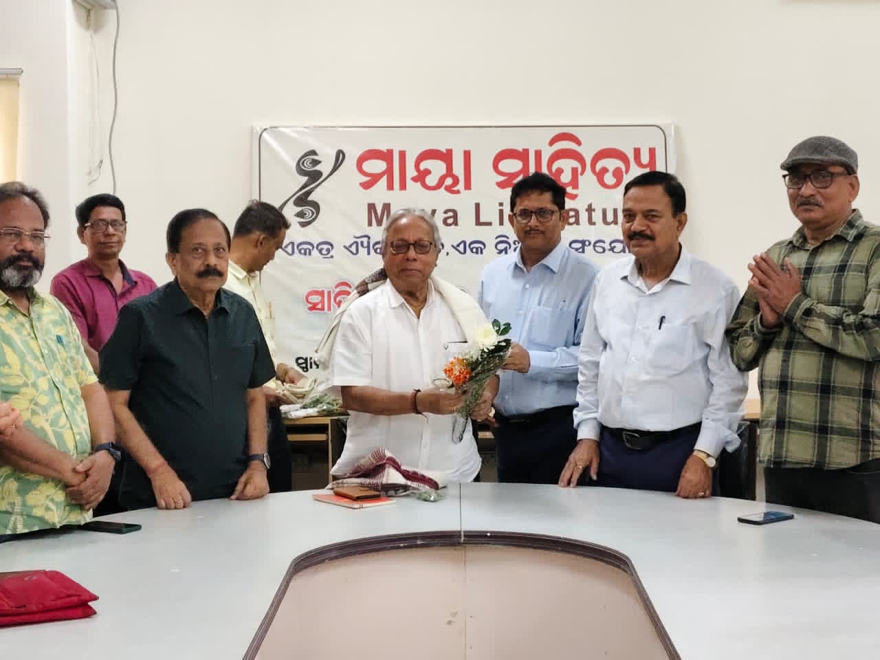 A grand literary gathering and friendship meet was held today at the NABM Auditorium, Bhubaneswar, under the aegis of Maya Sahitya. The event was presided over by Shri Akhil Kumar Mishra, Additional Director General, PIB, Ministry of Information and Broadcasting, Bhubaneswar. Renowned poet and senior litterateur Shri Har Prasad Dash participated as the chief Guest. Distinguished poets, literary figures, and intellectuals were also present.