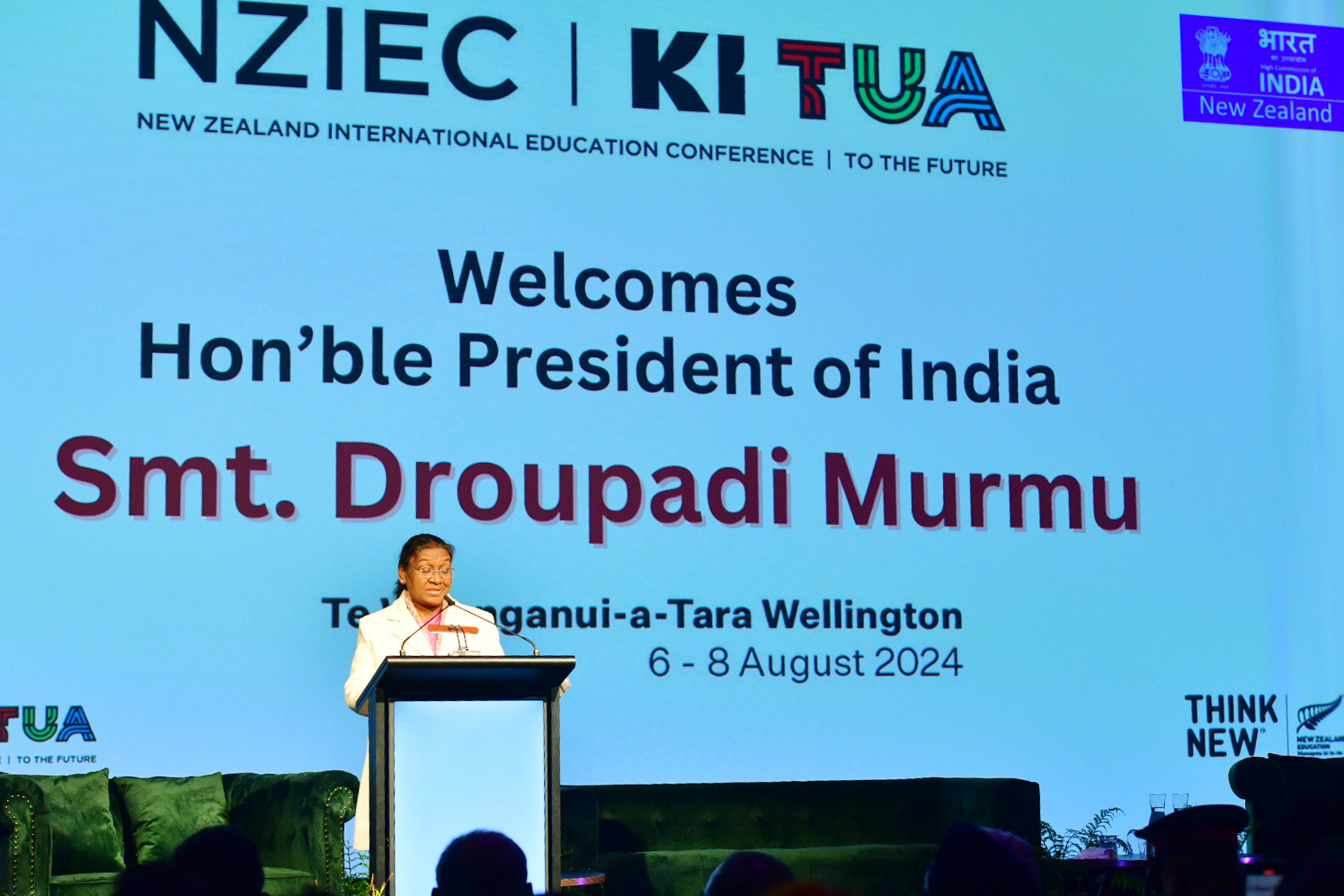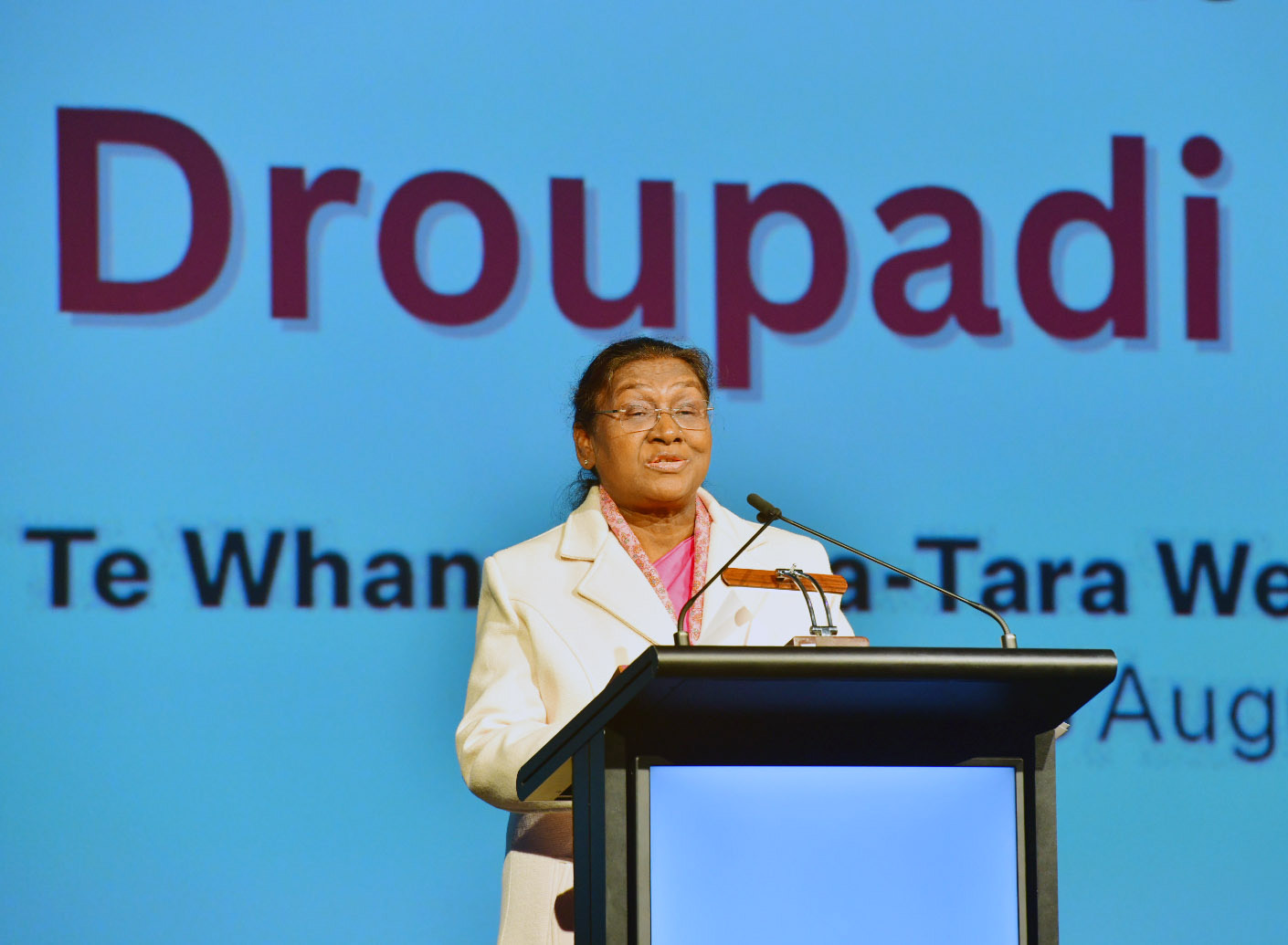 The President of India, Smt Droupadi Murmu addressing the New Zea...(Photo Id:163689)