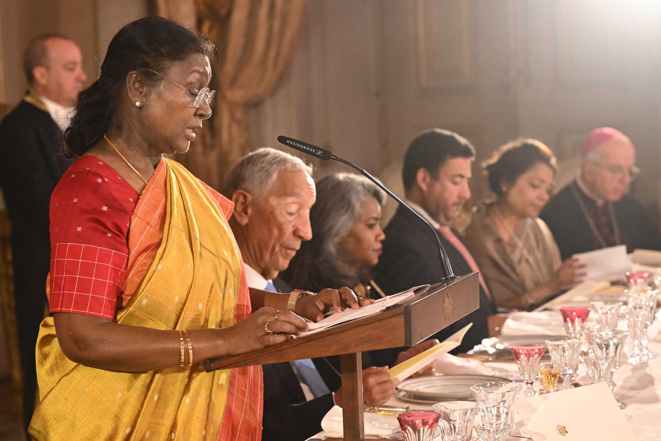 The President of India, Smt Droupadi Murmu addressing the banquet...(Photo Id:181618)