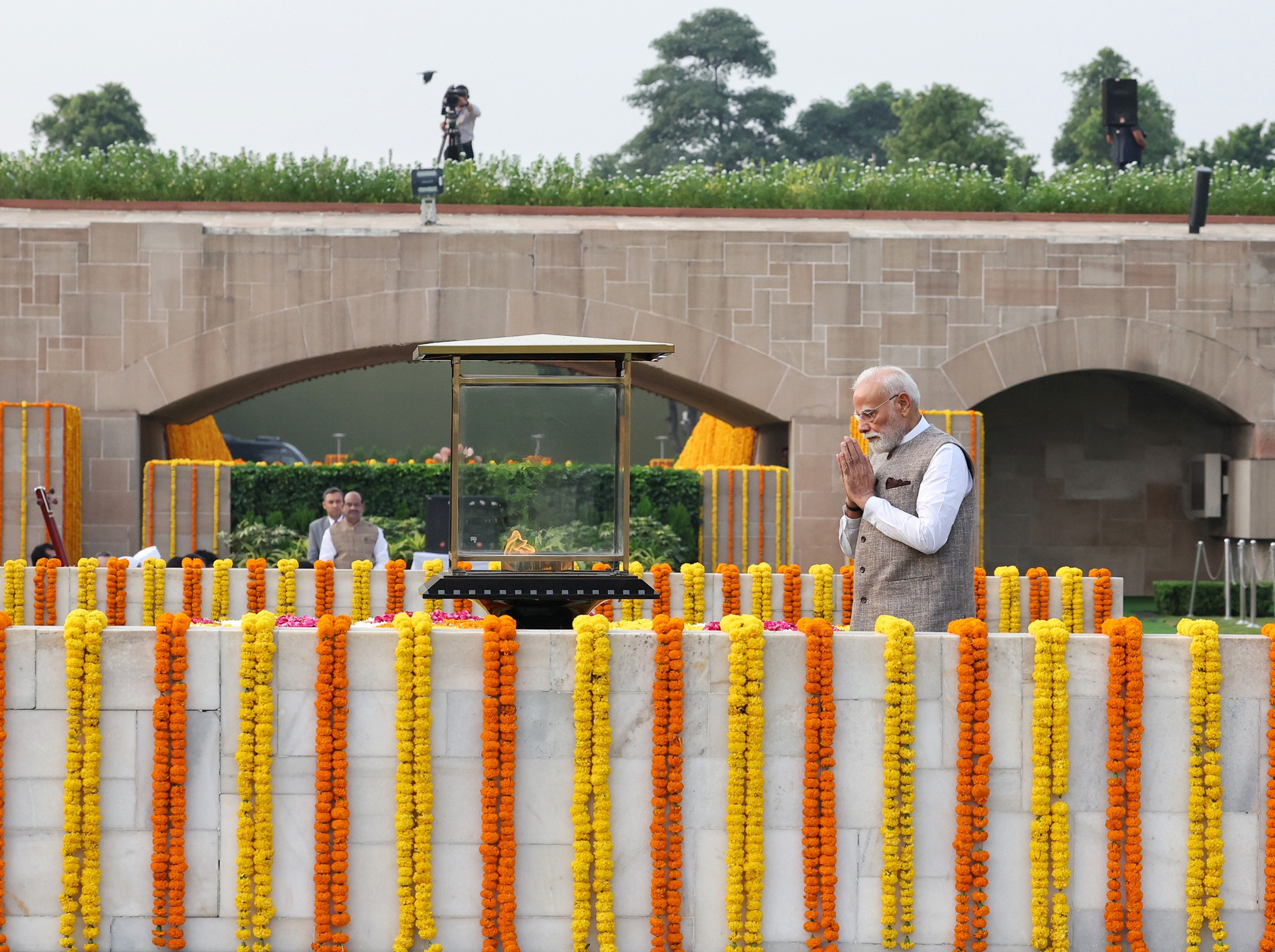 PM performing parikrama at the Samadhi of Mahatma Gandhi on the o...(Photo Id:192888)