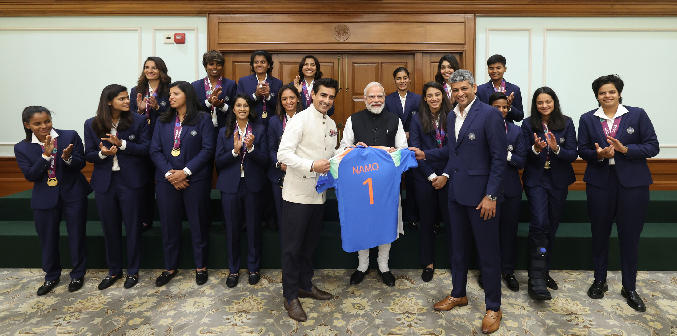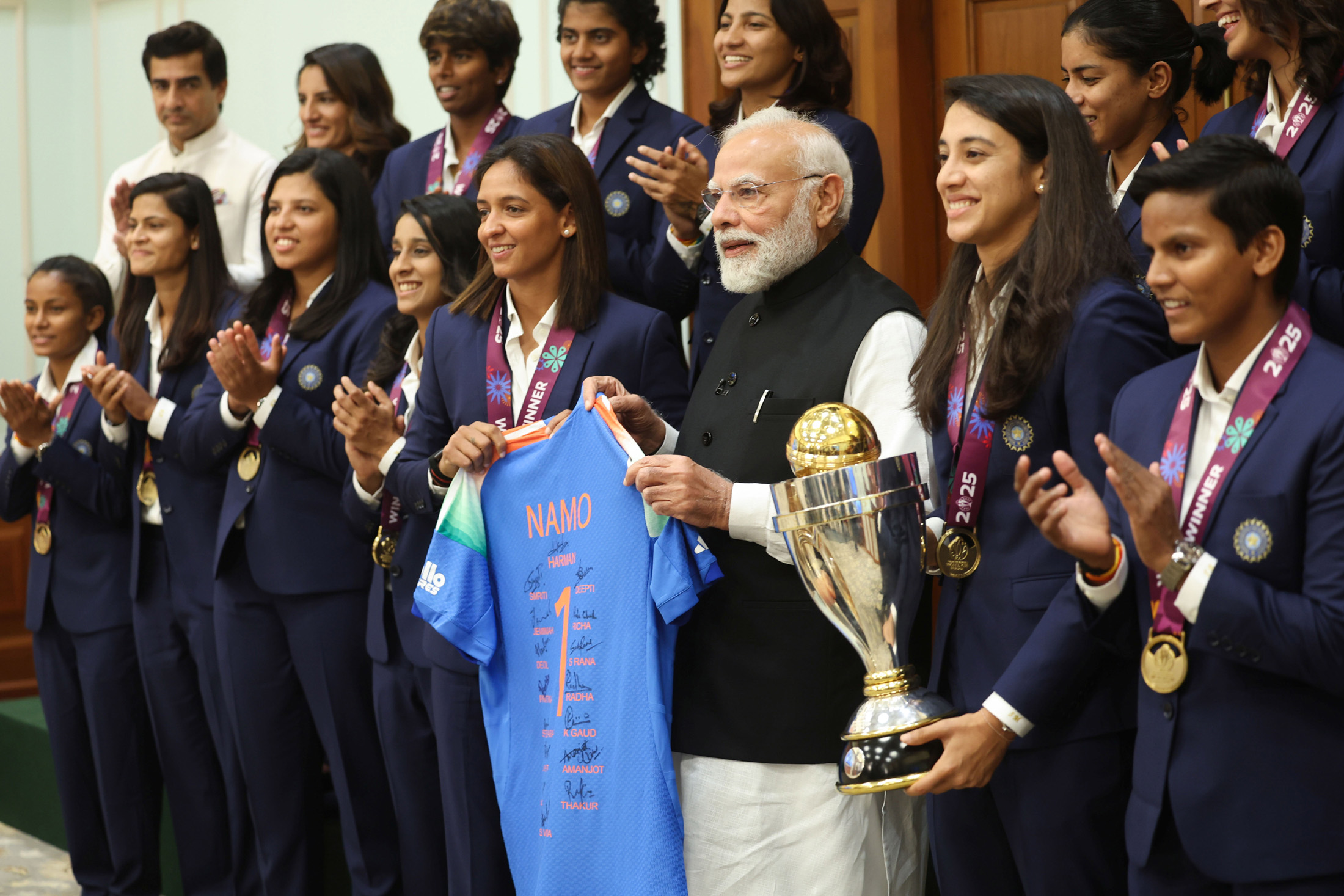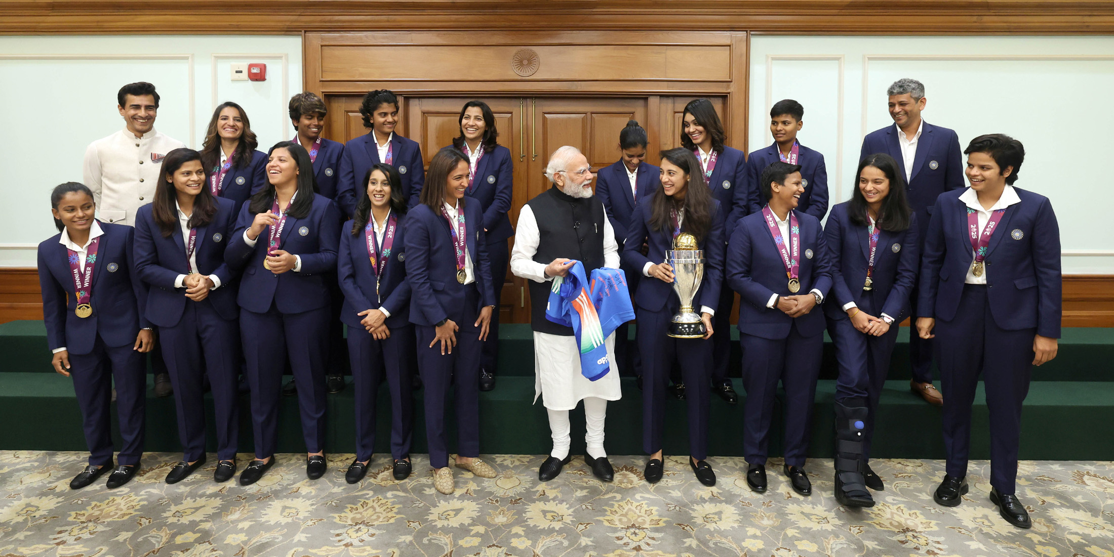 PM in a group photograph with Indian Women Cricket Team Players a...(Photo Id:195202)
