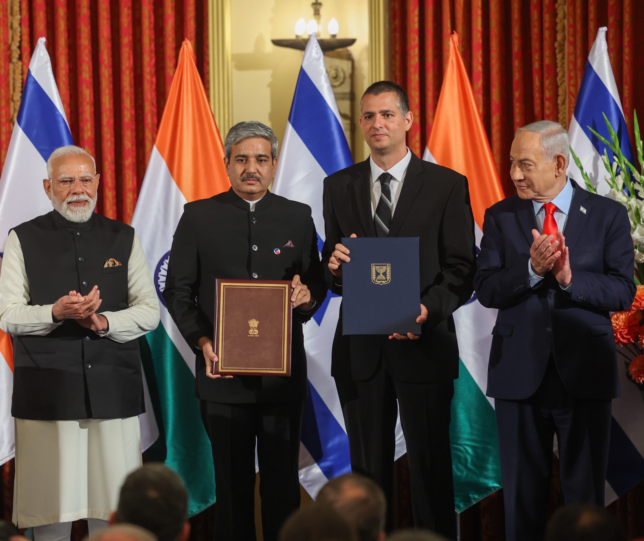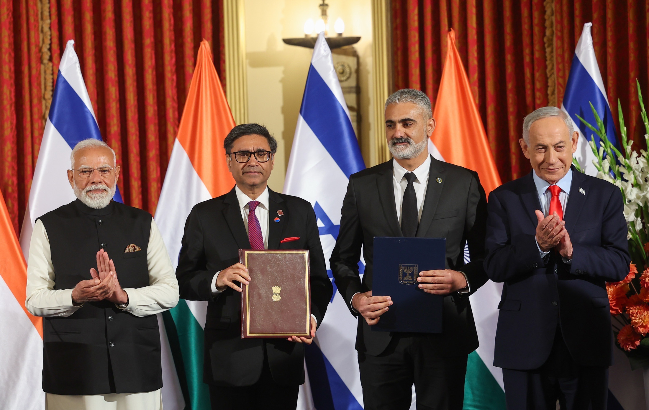 प्रधानमंत्री श्री नरेन्द्र मोदी और इजरायल के प्रधानमंत्री श्री बे...(Photo Id:204939)