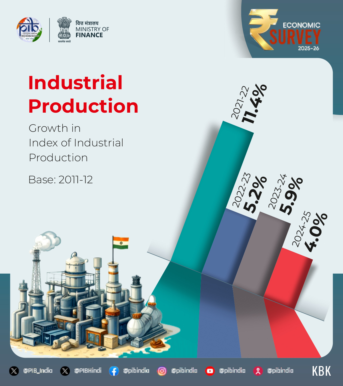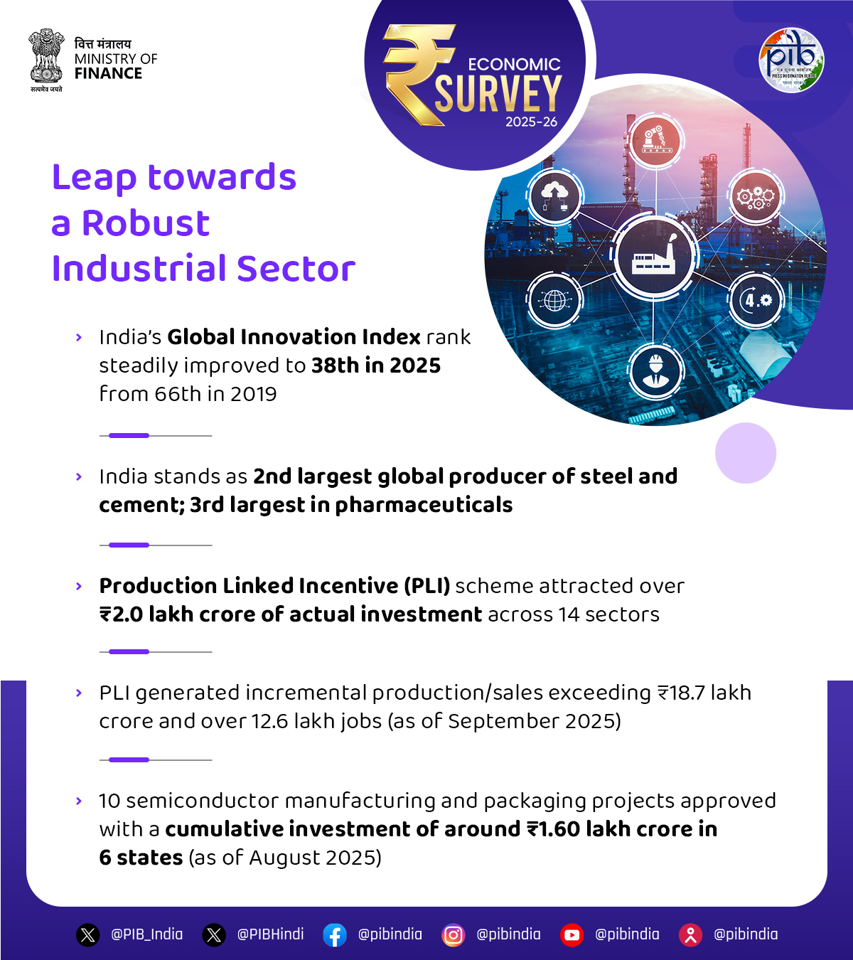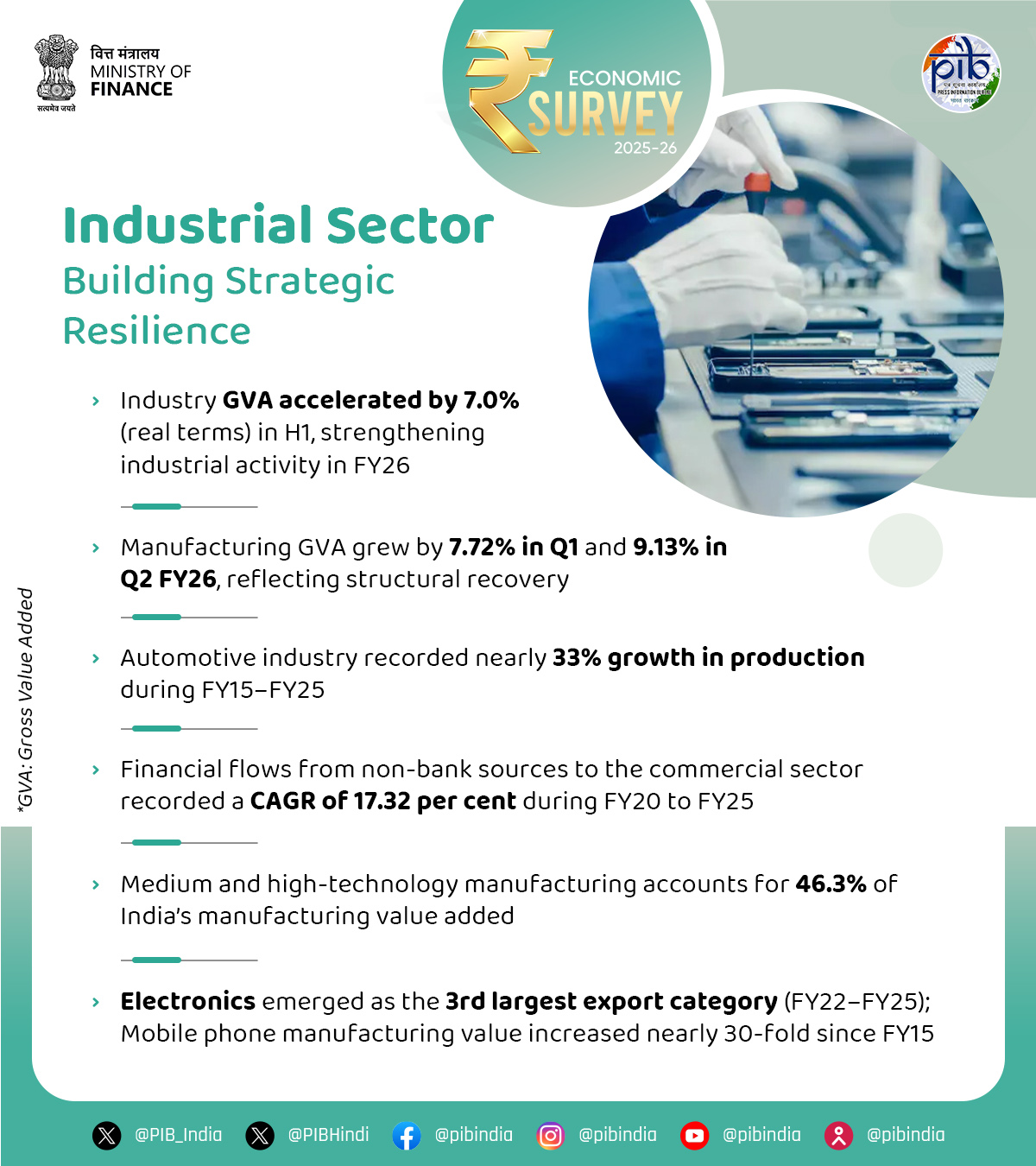 INDIA’S INDUSTRIAL PERFORMANCE REMAINS ROBUST AS INDUSTRY GROSS VALUE ADDED GREW BY 7.0 PERCENT YEAR-ON-YEAR, IN REAL TERMS, IN THE FIRST HALF OF FY2025-26: ECONOMIC SURVEY 2025-26