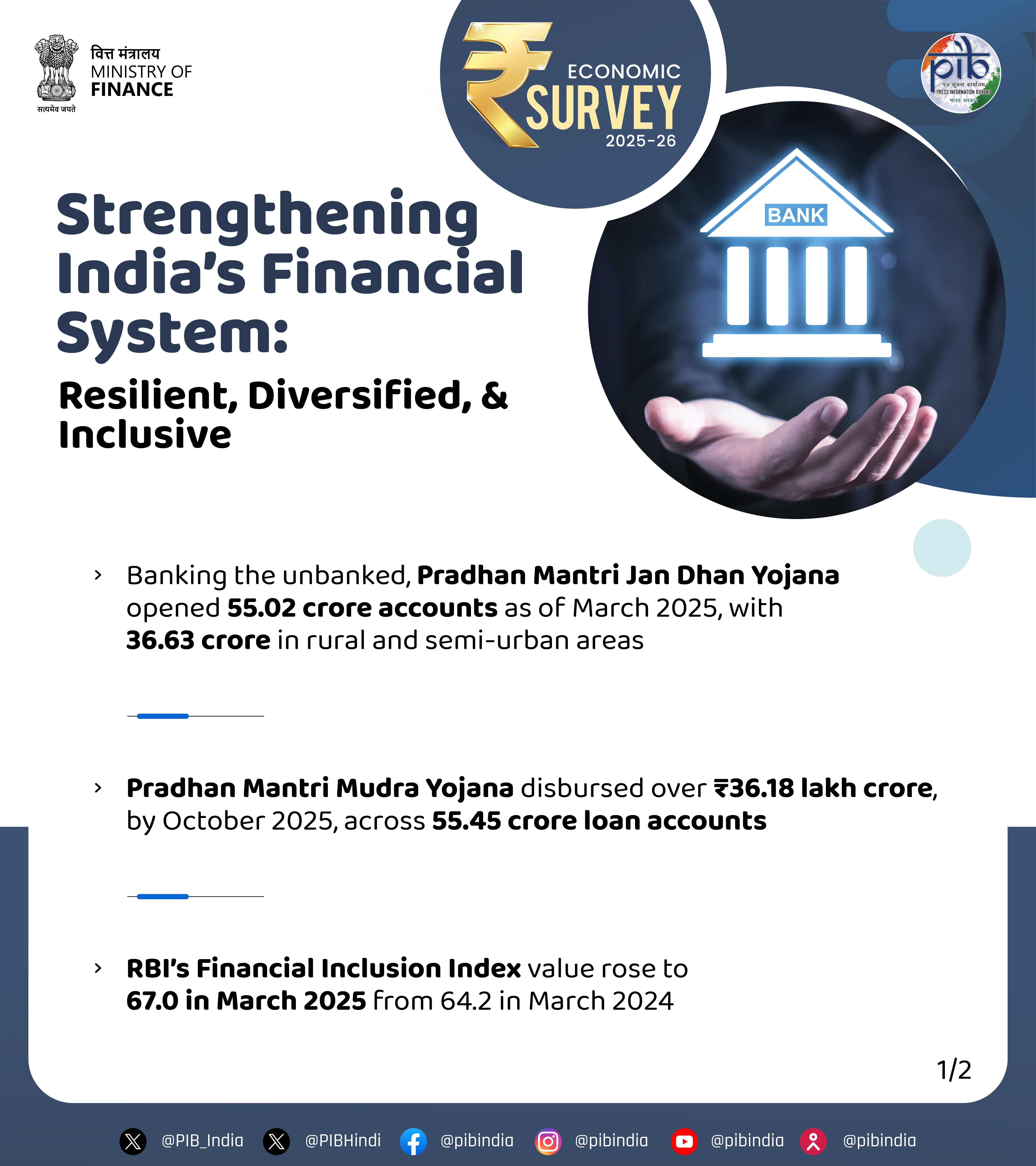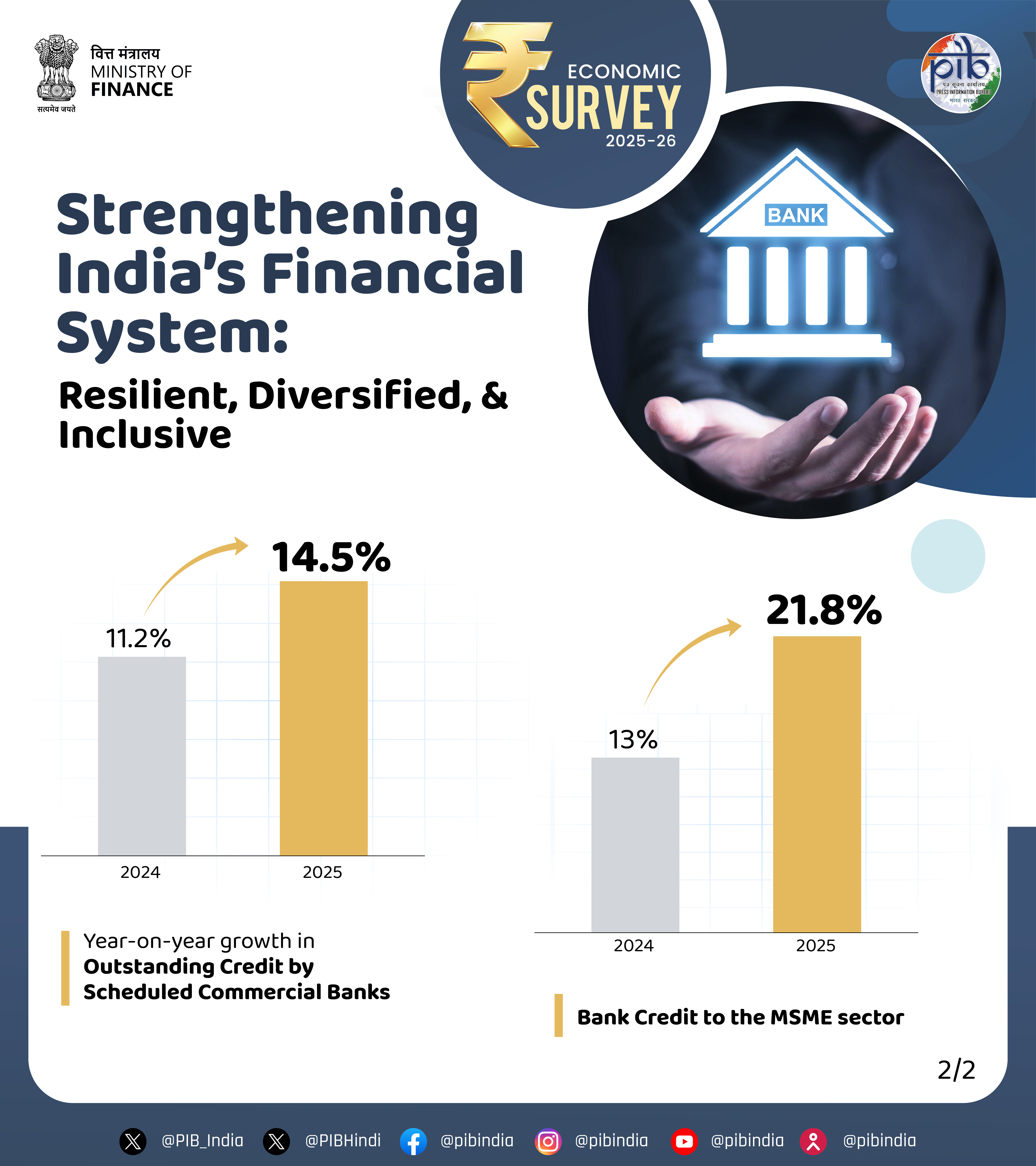 INDIA'S MONETARY AND FINANCIAL SECTORS ROBUST DESPITE THE UNCERTAIN GLOBAL GEOPOLITICAL SCENARIO: ECONOMIC SURVEY 2025-26