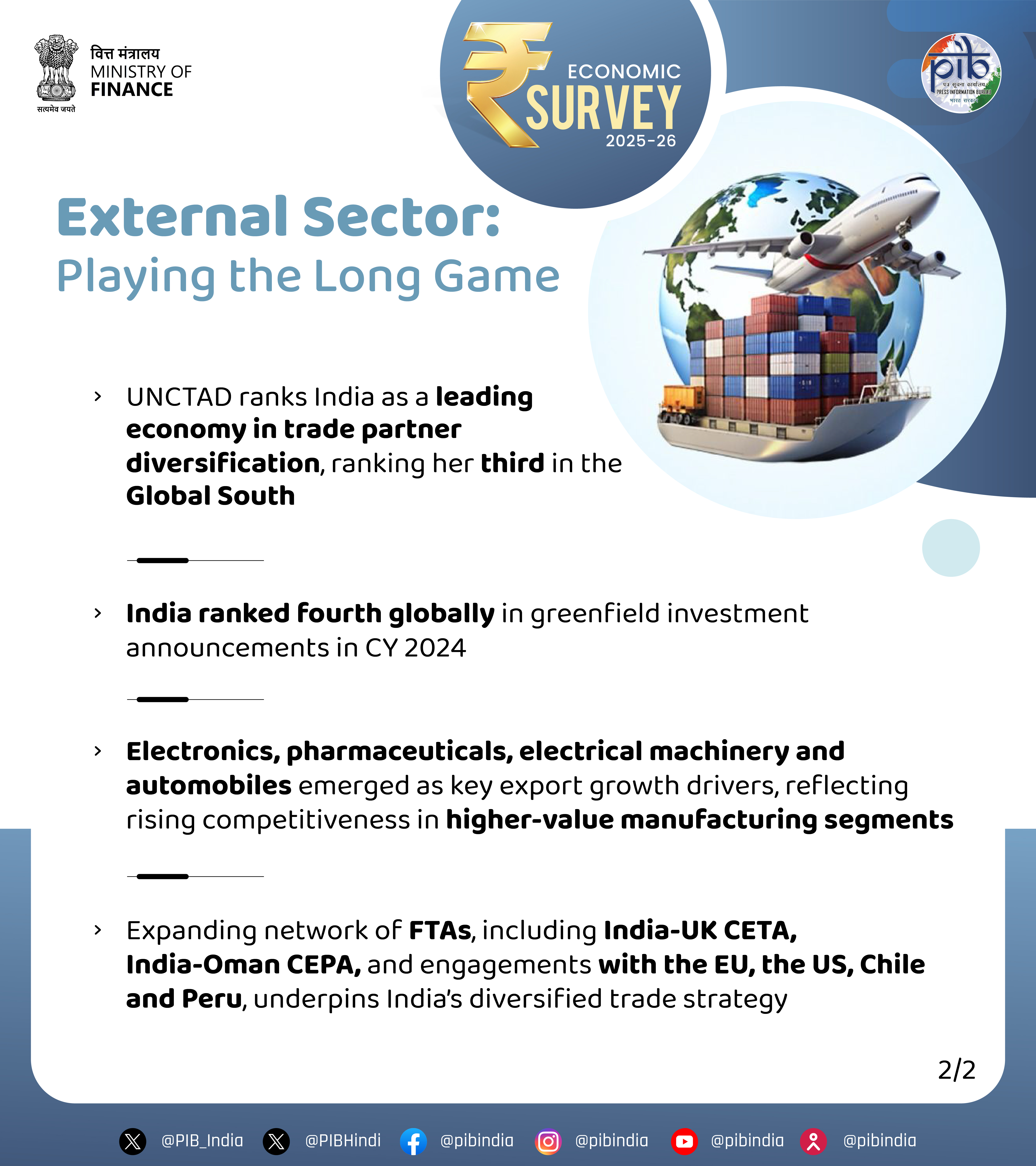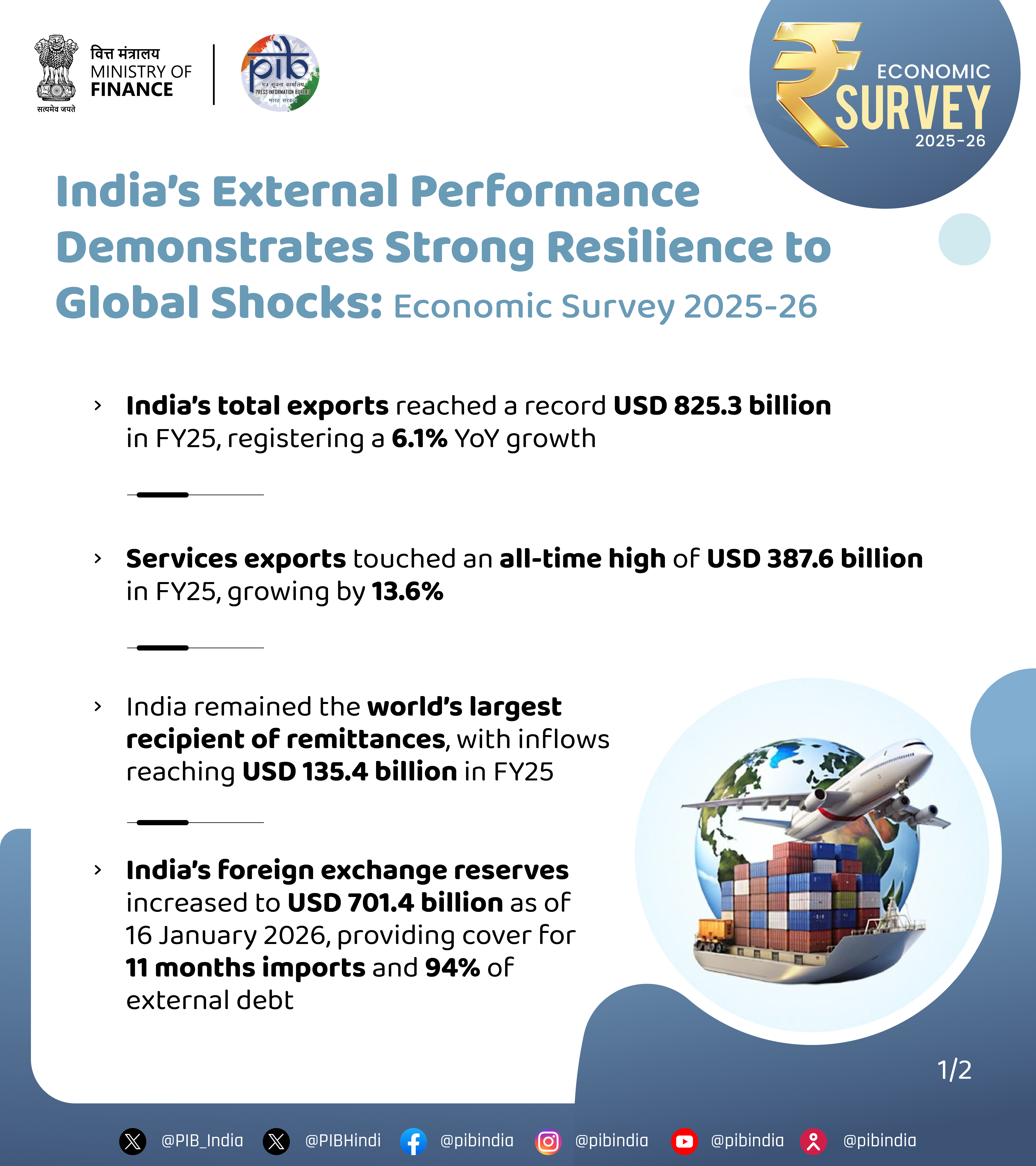 INDIA’S EXTERNAL PERFORMANCE DEMONSTRATES RESILIENCE TO GLOBAL SHOCKS: ECONOMIC SURVEY 2025-26