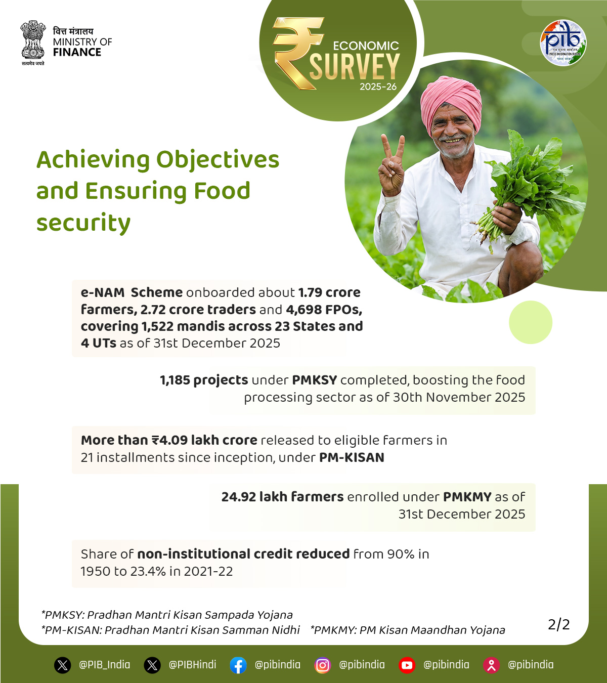 AGRICULTURE WILL BE CENTRAL TO ACHIEVING VIKSIT BHARAT, DRIVING INCLUSIVE GROWTH AND IMPROVING THE LIVELIHOODS OF MILLIONS: ECONOMIC SURVEY