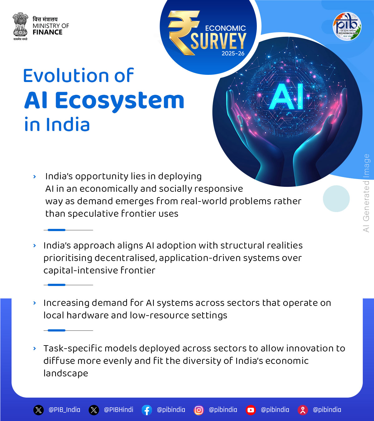 INDIA SHOULD PRIORITISE DECENTRALISED, APPLICATION-DRIVEN SYSTEMS OVER CAPITAL-INTENSIVE FRONTIER MODELS TO AVOID FRAGILE DEPENDENCIES IN ARTIFICIAL INTELLIGENCE: ECONOMIC SURVEY