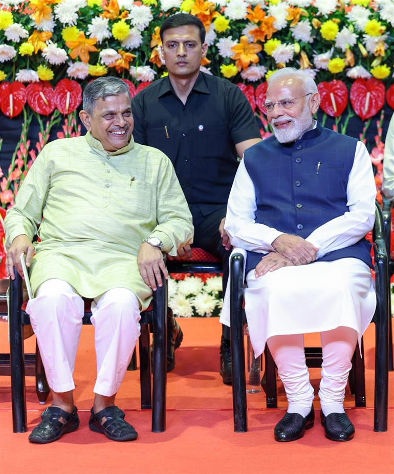 Gathering at the centenary celebrations of the Rashtriya Swayamsevak Sangh, in New Delhi on October 01, 2025. PM addressing on the occasion.