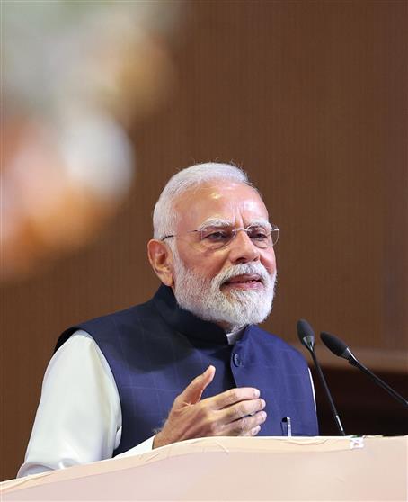 PM addressing at the NDTV World Summit-2025, in New Delhi on October 17, 2025.