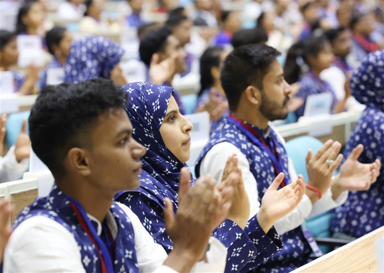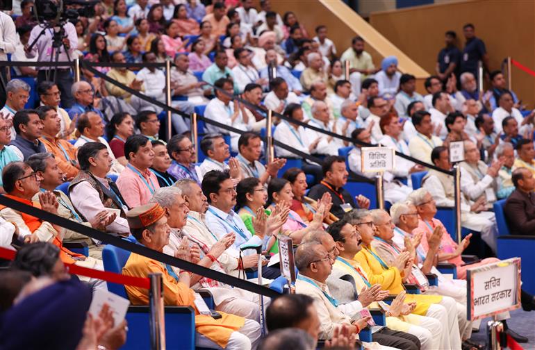 Gathering at the Kaushal Deekshant Samaroh held on the sidelines of the unveils of various youth-focused initiatives at Vigyan Bhawan, in New Delhi on October 04, 2025. PM addressing on the occasion.