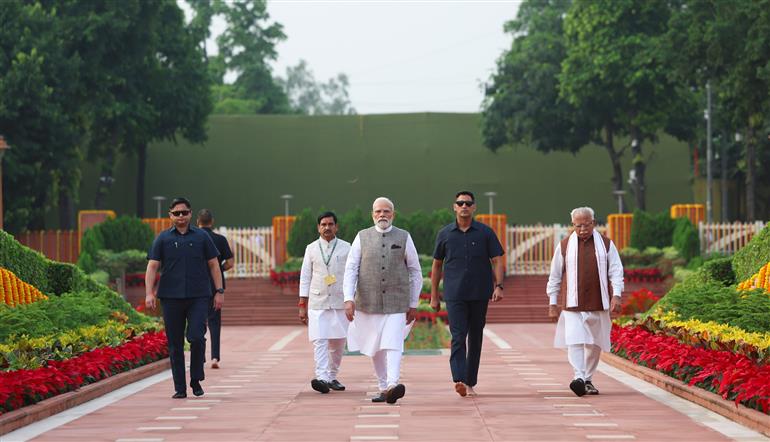 PM performing parikrama at Gandhi Smriti on the occasion of Gandhi Jayanti, in New Delhi on October 02, 2025.