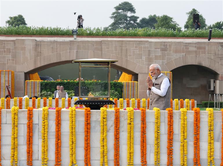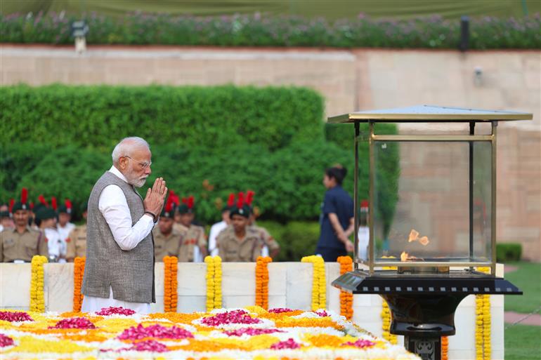 PM paying homage at Gandhi Smriti on the occasion of Gandhi Jayanti, in New Delhi on October 02, 2025.