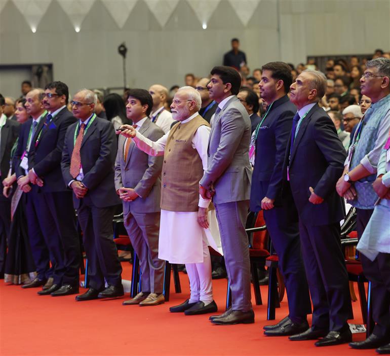 PM inaugurates India Mobile Congress 2025 at Yashobhoomi, in Delhi on October 08, 2025.