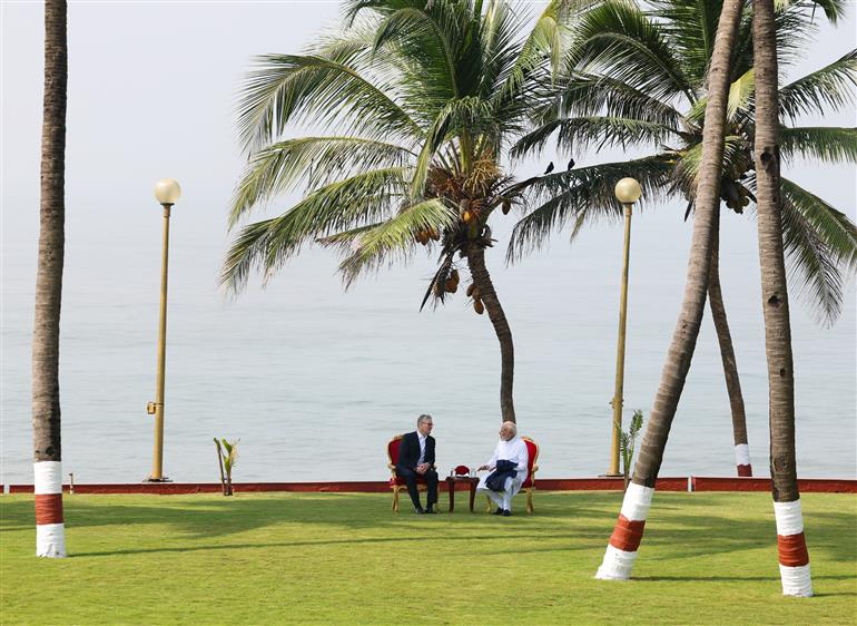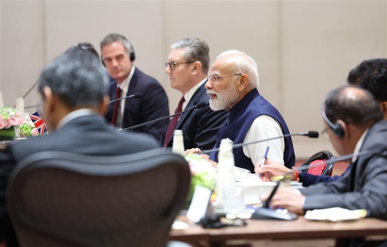 PM meets with the Prime Minister of the United Kingdom Mr. Keir Starmer in Mumbai, Maharashtra on October 09, 2025.