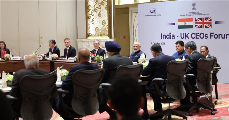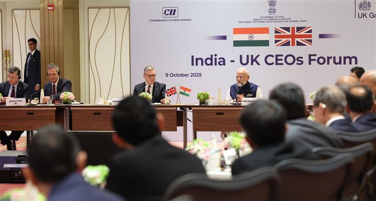 PM and UK PM Keir Starmer attends the reconstituted India-UK CEOs Forum, in Mumbai on October 09, 2025.