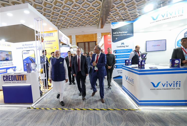 PM visits exhibition at Global Fintech Fest 2025, Jio World Center, in Mumbai, Maharashtra on October 09, 2025.