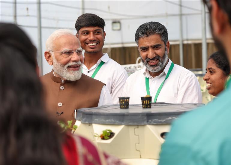 PM interacting with farmers engaged in pulses cultivation on the sidelines of the special Krishi programme held at Indian Agricultural Research Institute, in New Delhi on October 11, 2025.
