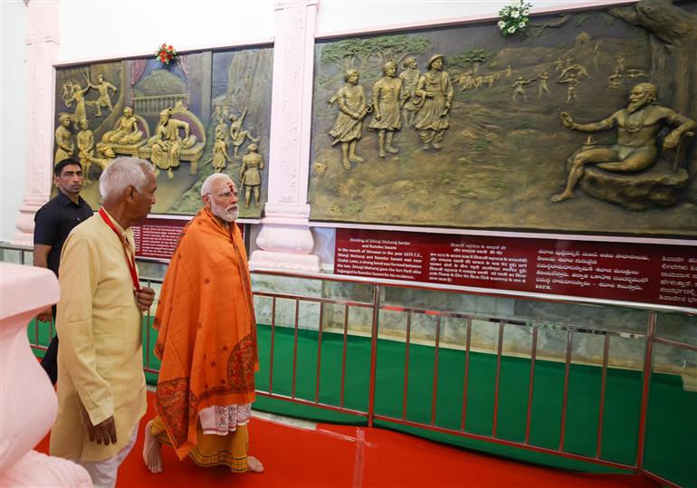 PM visits the Sree Shivaji Dhyana Mandir and the Sree Shivaji Darbar Hall at Srisailam, in Andhra Pradesh on October 16, 2025.