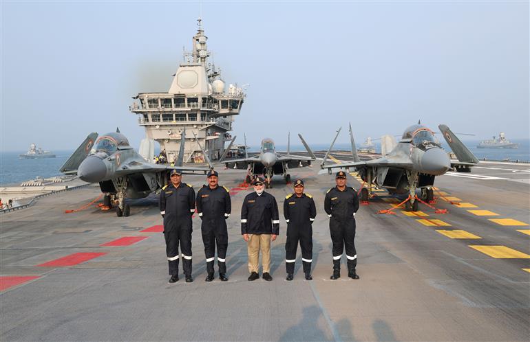 PM witnesses Steampast and Flypast at INS Vikrant on October 20, 2025.