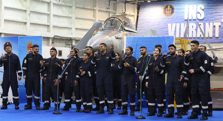PM attends cultural programme on the sidelines of Diwali celebration at INS Vikrant on October 20, 2025.