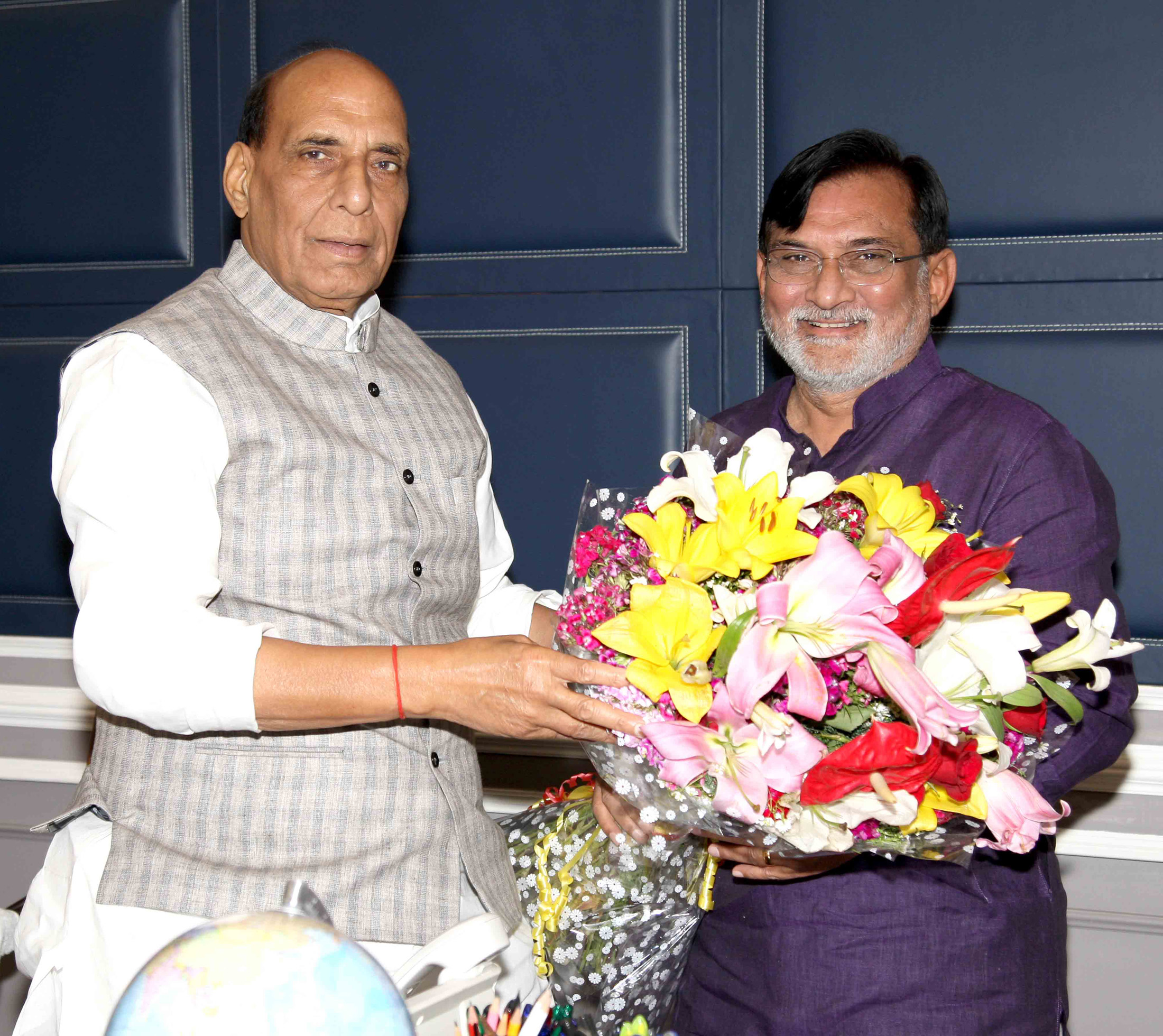 The Administrator of Union Territories of Dadra & Nagar Haveli and Daman & Diu and Lakshadweep, Shri Praful Patel calling on the Union Minister for Defence, Shri Rajnath Singh in New Delhi on March 07, 2022.